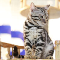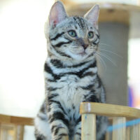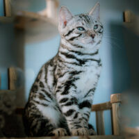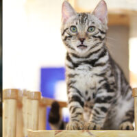 🌿 Đôi mắt xanh lam ngọc nổi bật giữa nền lông băng giá, kết hợp với thần thái thông minh và quan sát linh hoạt khiến Jareesa luôn chiếm spotlight dù chỉ ngồi yên một chỗ. Cấu trúc cơ thể săn chắc, đuôi dày và bước đi uyển chuyển – đúng chuẩn phom Bengal cao cấp.