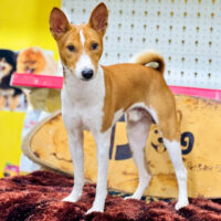 🐾 Kano là một bé Basenji đực có ngoại hình thanh thoát, dáng đứng chuẩn – đuôi cuộn – tai dựng – ngực nở và ánh mắt rực lửa khám phá. Lông bé màu vàng rơm pha trắng – mềm mịn – các mảng màu đối xứng cực kỳ bắt sáng 🌞