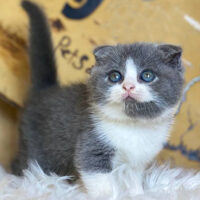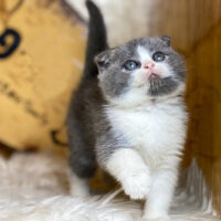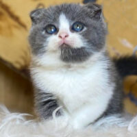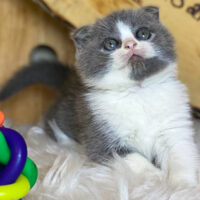 🎀 Kenzie – chàng mèo Scottish Fold tai cụp sở hữu vẻ ngoài vô cùng đáng yêu và cuốn hút. Với bộ lông bicolor xám trắng mềm mượt cùng đôi mắt to tròn, bé chắc chắn sẽ làm bừng sáng mọi không gian và mang đến niềm vui cho gia đình bạn.