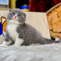 🎀 Lennox – chàng mèo Scottish Fold tai cụp sở hữu vẻ ngoài cuốn hút với bộ lông bicolor xám trắng độc đáo và đôi mắt tròn xoe đầy biểu cảm. Bé mang đến sự tinh nghịch và đáng yêu cho bất kỳ ai gặp gỡ.