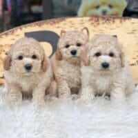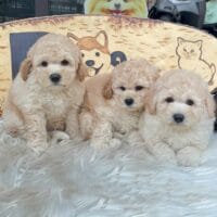 - Màu lông: Đồng nhất sắc vàng mơ óng ả, từ tông kem nhẹ nhàng đến ánh nắng rực rỡ, mỗi bé đều sở hữu bộ lông xoăn tít, bồng bềnh và mềm mại như nhung, phản chiếu ánh sáng tuyệt đẹp.
