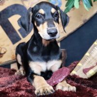 🐾 Max là một chú chó Doberman Pinscher đực, sở hữu bộ lông đen tuyền bóng mượt kết hợp với những mảng màu vàng đồng nổi bật. Vẻ ngoài của bé cực kỳ cuốn hút với thân hình săn chắc, đôi mắt tinh anh và tư thế oai vệ, toát lên sự thông minh và dũng mãnh.