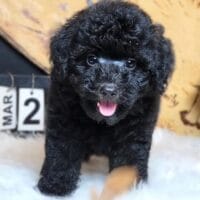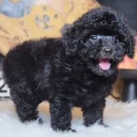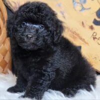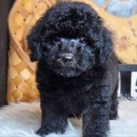 Milou – bé Poodle đen tuyền với đôi mắt to tròn như cún hoạt hình, lông xoăn mượt mà, biểu cảm cực ngoan khiến ai nhìn cũng muốn làm “con sen”! 🖤🐶