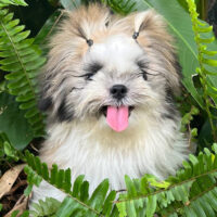 🐾 Phi Yến – Shih Tzu cái 2 tháng, lông trắng vàng pha đen bồng bềnh, ngoan ngoãn, thân thiện & siêu quấn chủ 💕.