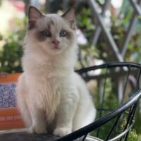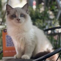 🌸 Saphira – Ragdoll cái 4 tháng tuổi, lông trắng kem 💎, mắt xanh sapphire 🌊, hiền ngoan và cực kỳ tình cảm 🐾💕