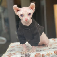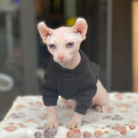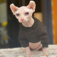 Selina – mèo Sphynx không lông 3 tháng tuổi 💖, da hồng 🌸, mắt xanh 💙, quấn chủ 🤗, sang chảnh 😻.