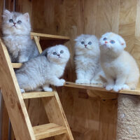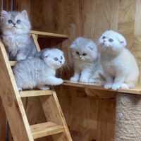 🐾 Chào mừng đến với “Bản giao hưởng” của vẻ đẹp và sự đáng yêu – Đàn 4 bé mèo Scottish Fold Silver Tabby và Red Tabby! Mỗi bé là một cá tính riêng biệt, cùng nhau tạo nên một bức tranh hoàn hảo.