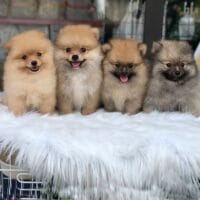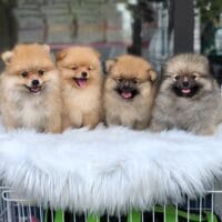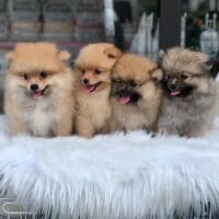 Đây là The Golden Charmers, một “bộ tứ” Phốc Sóc (Pomeranian) mặt gấu đáng yêu với bộ lông vàng óng ả nhưng mỗi chú lại mang một sắc thái riêng, tạo nên một bức tranh màu sắc hài hòa và quyến rũ. Hãy cùng khám phá những “người quyến rũ” nhỏ bé này nhé: