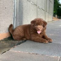 🐾 Uy là một chú chó Bắc Hà đực khoảng 2 tháng tuổi, sở hữu bộ lông xù dày, bồng bềnh như nhung trong một màu nâu đỏ/socola đậm đà, quyến rũ. Dáng vẻ của bé toát lên sự điềm tĩnh và mạnh mẽ, hứa hẹn sẽ trở thành một chú chó trưởng thành vô cùng oai vệ.