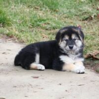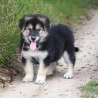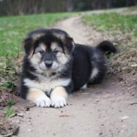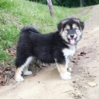 🧸 Uyên là một bé chó Bắc Hà cái 2 tháng tuổi – sở hữu bộ lông dày bông mịn, phối màu đen – vàng cực “ăn ảnh” và hài hòa như tranh vẽ 🖼️✨