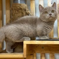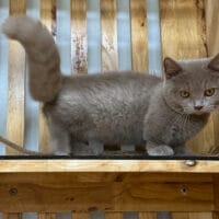 Mèo Munchkin Lilac chân ngắn siêu phẩm, mắt hổ phách, bộ lông màu tím nhạt độc đáo, tính cách dịu dàng! 💜 Nàng thơ Xyla đáng yêu, sẵn sàng về nhà mới! ✨