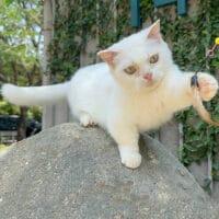 🐾 Yara – nàng mèo Munchkin trắng tuyết 5 tháng tuổi với đôi mắt long lanh như ngọc bích hoặc hổ phách, bé là một “thiên thần nhỏ” thuần khiết và đáng yêu, sẵn sàng mang đến sự dịu dàng và niềm vui tinh khôi cho ngôi nhà của bạn! 🦢🤍
