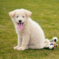 🐶 Yua là một bé Bắc Hà cái 2 tháng tuổi – lông trắng kem hơi xoăn nhẹ, bông tơi như mây, mặt tròn, mắt hí, miệng luôn “cười”, tạo cảm giác thân thiện và yêu đời ngay từ ánh nhìn đầu tiên 😄