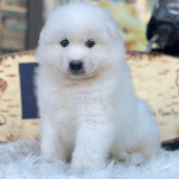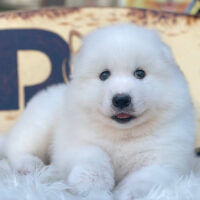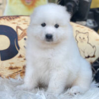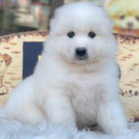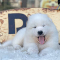 ❄️ Yurikov là một bé Samoyed đực 2 tháng tuổi sở hữu ngoại hình trắng mịn như tuyết đầu mùa – toát lên khí chất của một “chàng hoàng tử Bắc Cực” 🏔️