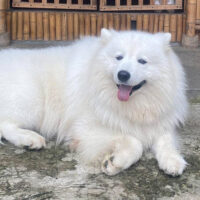 🐺 Zhivko là chú Samoyed đực giống trưởng thành (trên 12 tháng tuổi), mang hình thể nổi bật: to khỏe, cơ bắp rắn chắc, bộ lông trắng muốt dày mịn như tuyết phủ đầu đông – đậm chất “chiến binh trắng phương Bắc” ❄️🧊