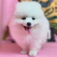 Bé Zinbi trắng muốt, mặt tròn siêu cấp đáng yêu 🍼, ánh mắt trong veo như cục kẹo ngọt 🍬, đúng chuẩn “em bé thiên thần” của Chạm Pets! 😇