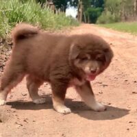⛰️ Bé sở hữu bộ lông dày dặn, đặc trưng của giống chó vùng cao, màu nâu đỏ như đất bazan, tương phản nổi bật với sắc trắng ở ngực, chân và chóp đuôi, tạo nên một diện mạo cuốn hút và khỏe khoắn 🥹🥰
